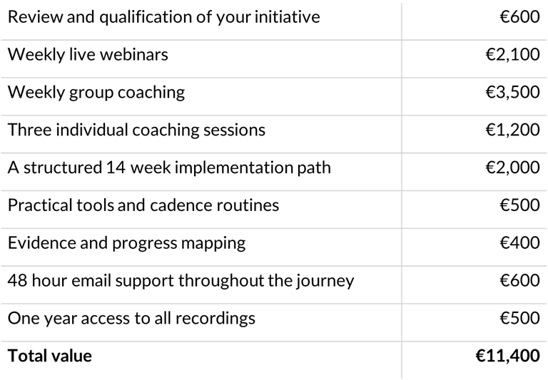 This is not passive learning. It is active implementation with coaching, community and structure.